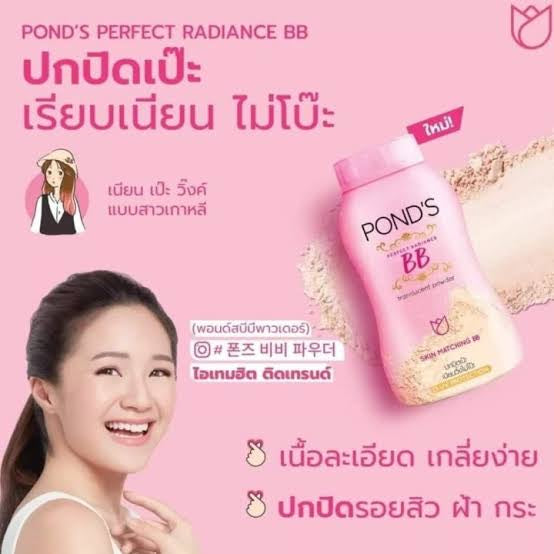 Pond's BB Translucent Powder (Perfect Radiance) is one of the most popular beauty products made in Thailand. This fine, light powder has a pronounced matte effect. It prevents oily shine and helps to eliminate skin imperfections due to the high content of antimicrobial and anti-inflammatory natural ingredients.