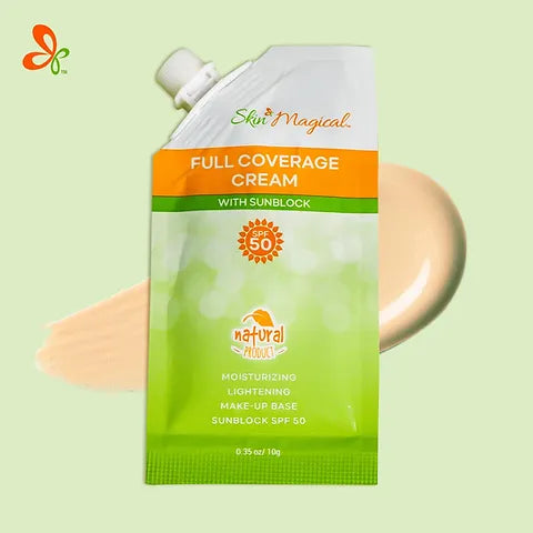 Skin Magical Full Coverage Cream With Sunblock SPF 50 covers and lightens imperfections and provides an improved appearance. Also, it mattifies area so it can be used as a makeup base. Moreover, it provides sunblock protection for everyday use.