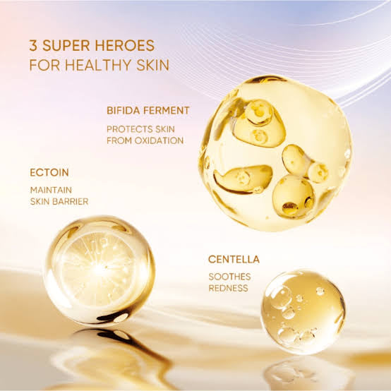 ·Formulated with Bifida Filtrate, Lactobacillus Ferment, Ectoin, and Centella in the serum phase, combined with Squalane and Hippophae rhamnoidesin the oil phase, working synergistically to deeply hydrate and strengthen skin barrier.